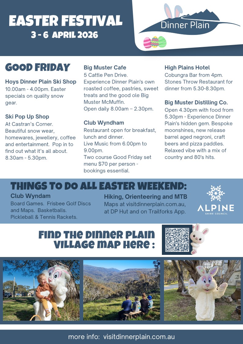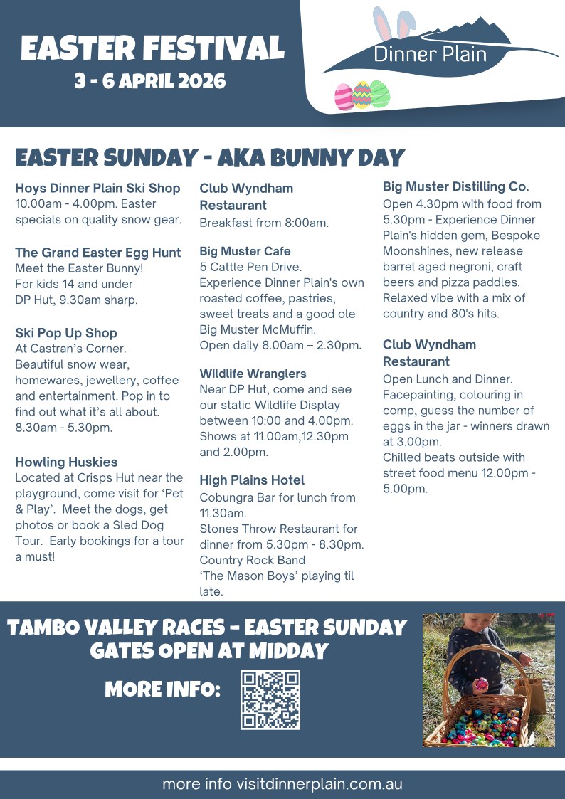 If you're looking for an Easter escape in the high country with plenty of fun for the whole family, the much-loved Dinner Plain Easter Festival is on again from 3-6 April!
