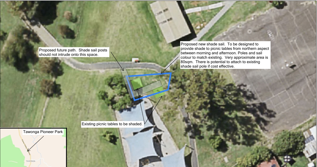 The Tawonga District Community Association recently installed new picnic tables near the playground. To support and enhance this community‑led project, Council will: